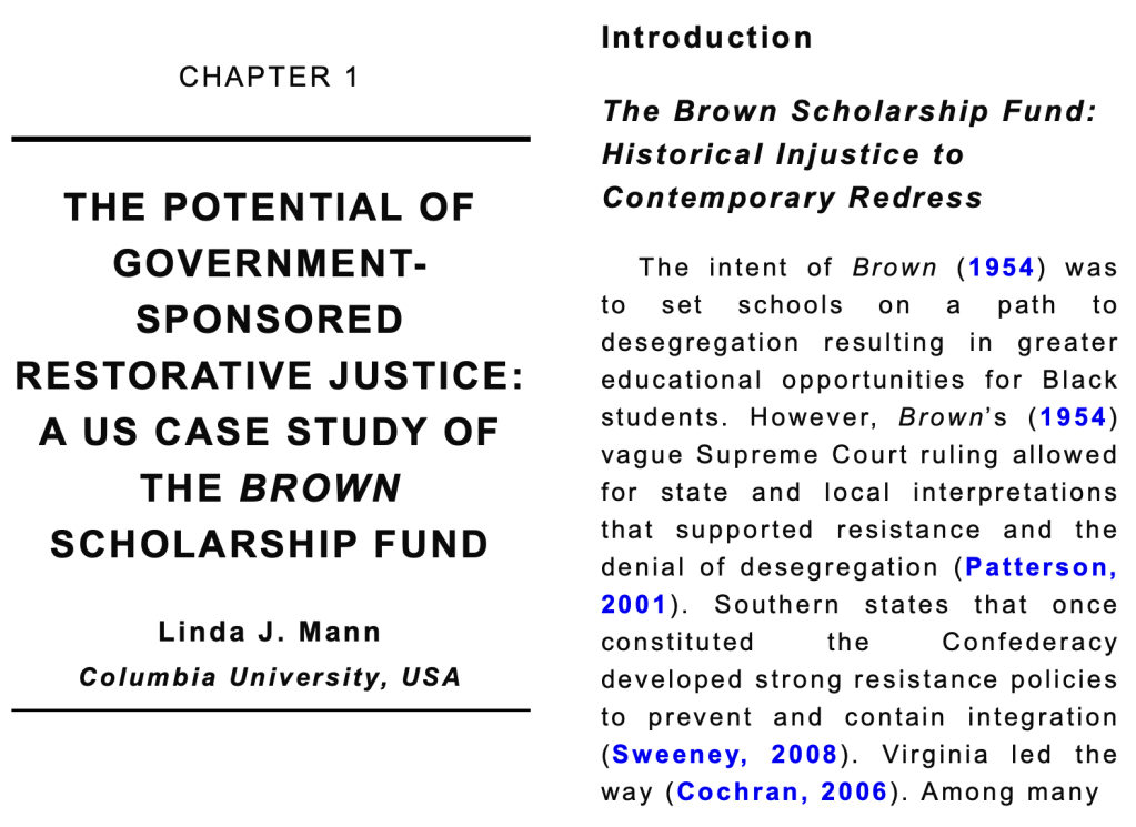 Mann, Linda J. ( 2025). The Brown Scholarship Fund in Prince Edward County, Virginia School Closing in Prince Edward County, Virginia School Closing a Compilation of Research Studies, Hicks, Terence, Editor. Emerald Publishing Limited.