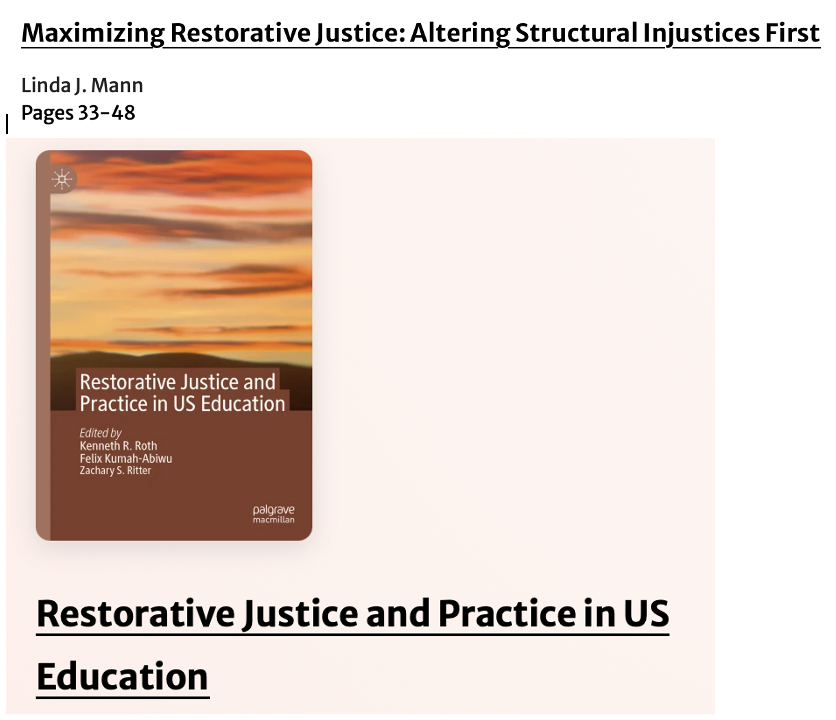 Restorative Justice in U.S. Policymaking (2018, Oct) Human Rights and Law and Justice. Columbia University.